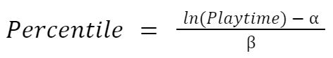 From these equation fits we’re trying to get at the reshaped equation for the percentile for a given playtime value, or