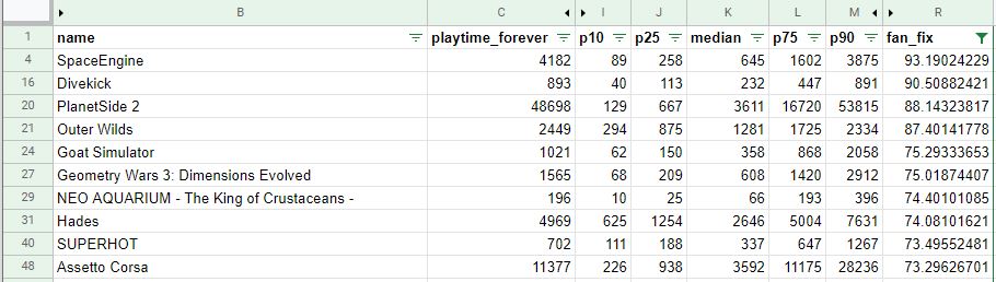 There’s a compelling case to be made that just because someone spent a long time with something doesn’t mean they enjoyed every minute of it. The value of percentile we’re calculating is a measure of engagement compared to the rest of the population and not really a ‘review’ of the game, but it could be correlated to one. I would hope that engagement is correlated to enjoyment to a reasonable extent, especially for games. If you’re not having fun, why continue? There’s a lot of asterisks and caveats to that, which are probably outside the scope here. The main purpose of leveraging the playtime data is to capture a measurable of enjoyment without relying on explicit review data that most people don’t leave anyway.